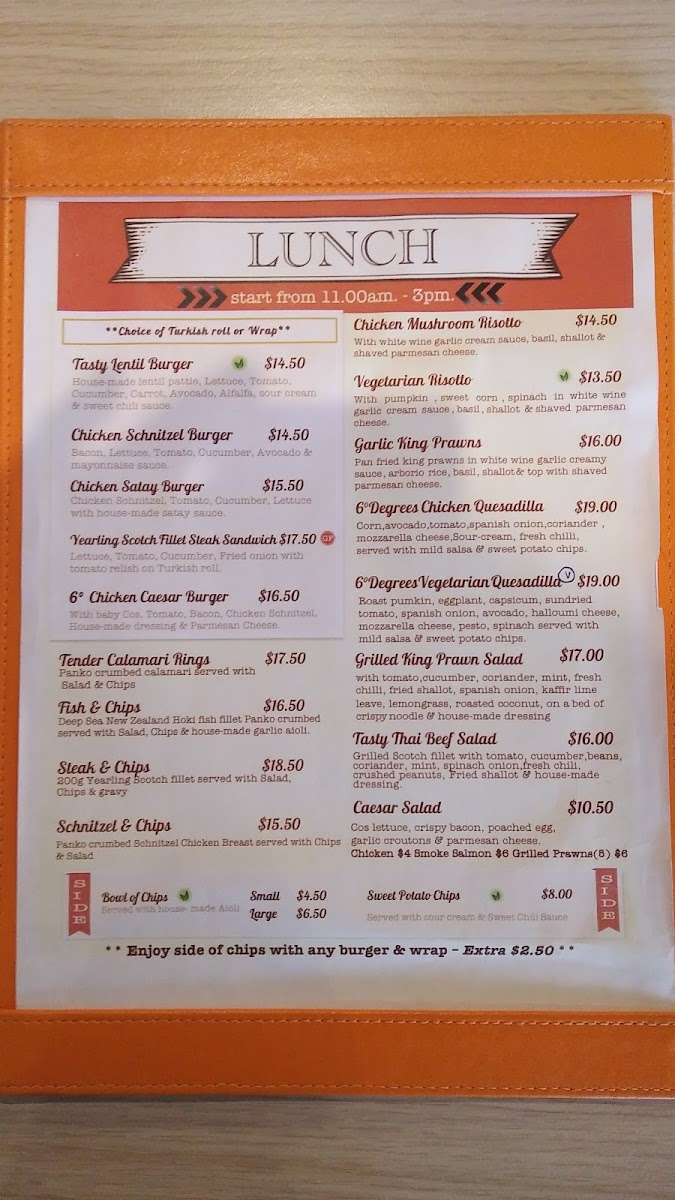 From a reviewer’s perspective, the menu at Six Degrees Cafe, located at 8/327 West St, Umina Beach NSW 2257, Australia, offers a well-rounded and approachable dining experience that caters to a wide range of tastes throughout the day. The lunch selection strikes a balance between comfort and variety, with hearty options such as Chicken & Mushroom Risotto, Vegetarian Risotto, Mediterranean Melt, Schnitzel & Chips, and the crowd-pleasing Pulled Pork Nachos, all of which feel satisfying without being overly complicated. Burger lovers are equally well served, whether opting for classic or more adventurous choices like the Caesar Burger, Schnitzel Burger, Satay Burger, or plant-based alternatives including the Tasty Lentil Burger and Tofu Burger, showing the café’s clear effort to include vegetarian-friendly options.
